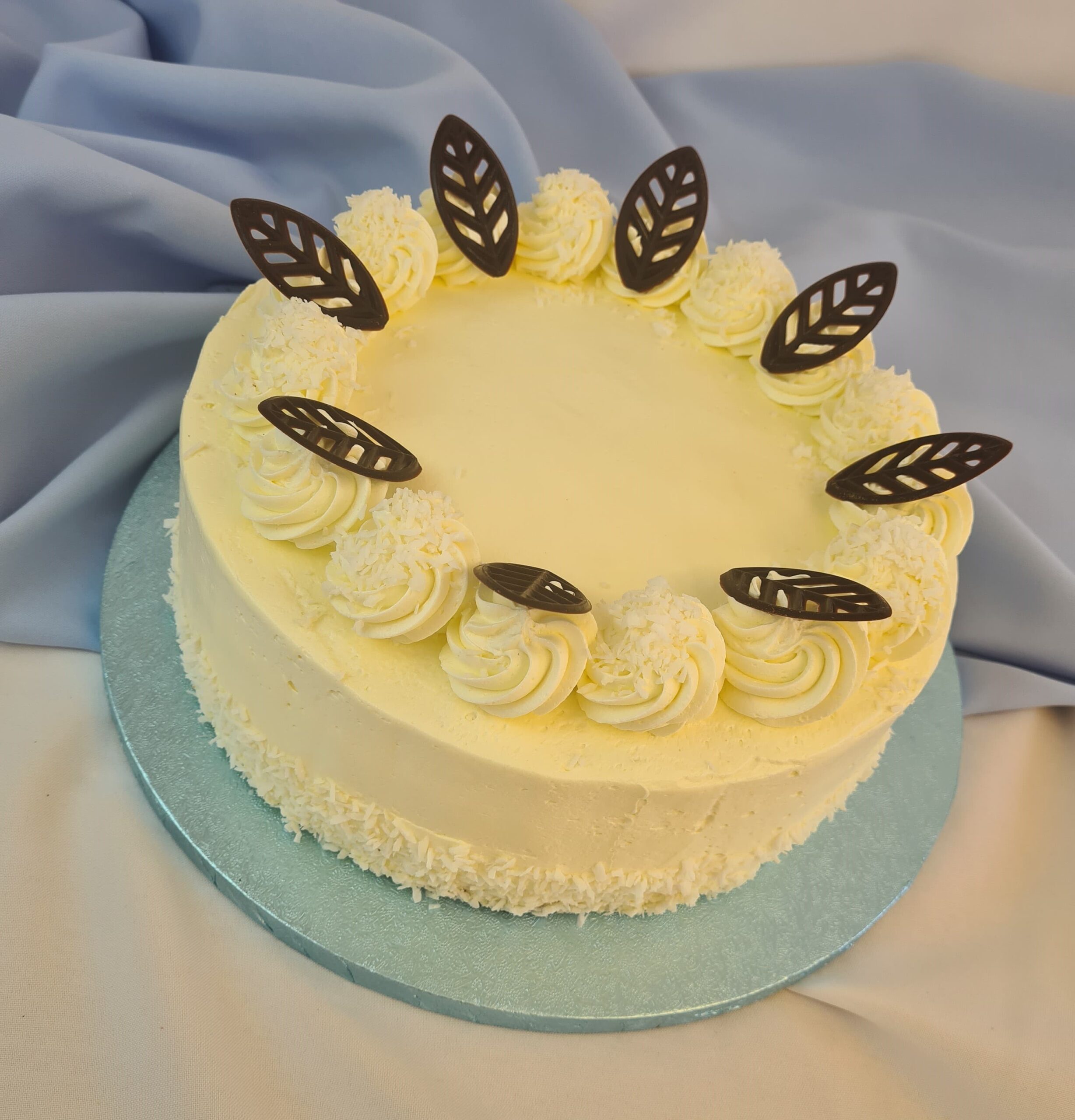 Smetanový dort s kokosovou šlehačkou, kokosem a sachr korpusem