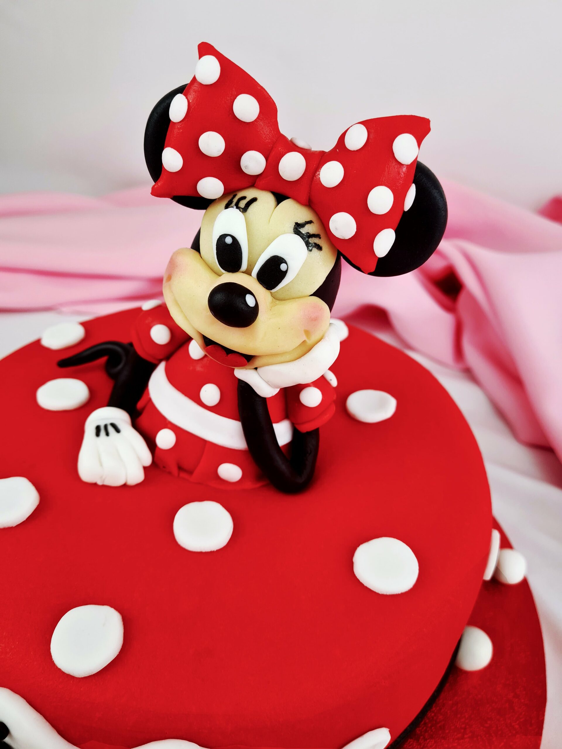 Krémový dort potažený do marcipánu, s figurkou minie.