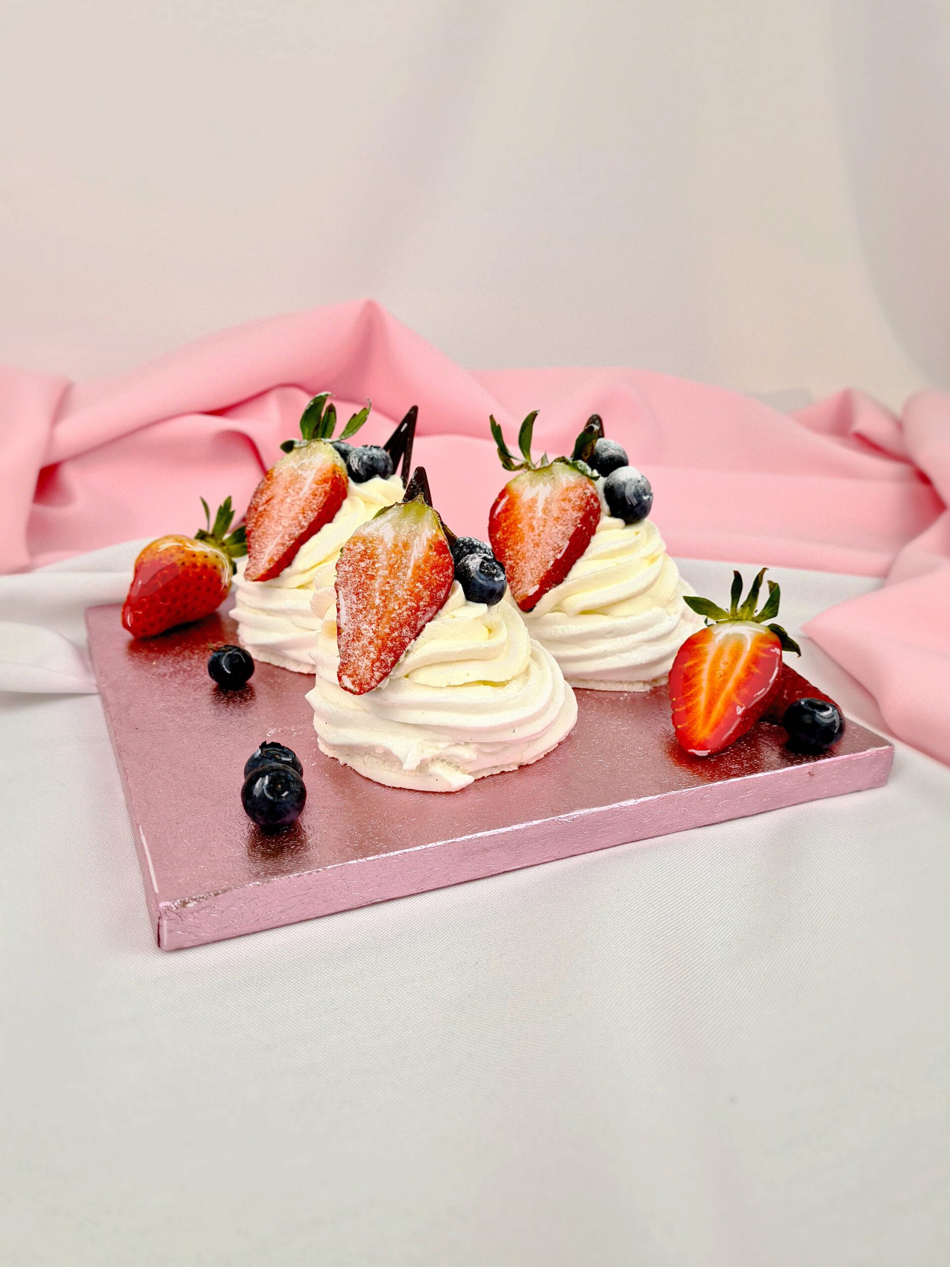 Korpus sněhový, živočišná šlehačka a čerstvé ovoce